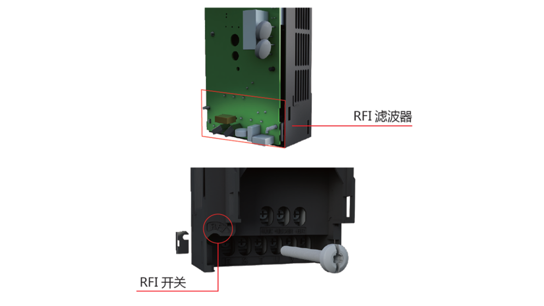 全系內(nèi)置C3等級(jí)的RFI濾波器(可通過(guò)RFI開(kāi)關(guān)選擇是否連接),可以減小電磁干擾,使變頻器EMC性能達(dá)到二類(lèi)環(huán)境(工業(yè)環(huán)境)不受限制使用。