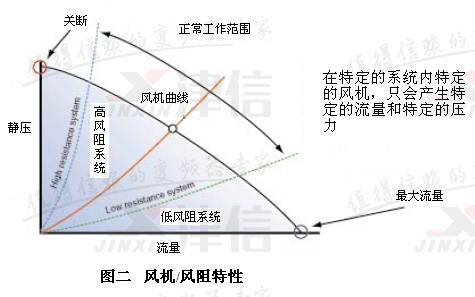 選擇風(fēng)機(jī)的基本原則:在特定的系統(tǒng)里特定的風(fēng)機(jī),只會產(chǎn)生特定的流量和特定的壓力。風(fēng)機(jī)輸出壓力特性曲線和系統(tǒng)風(fēng)阻特性曲線的交點(diǎn)就是風(fēng)機(jī)的工作點(diǎn)。
