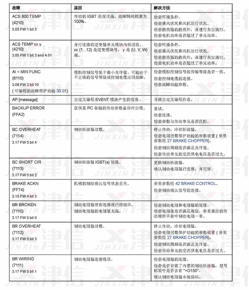 ABB ACS800變頻器在出現(xiàn)故障時,在控制盤顯示器中會顯示警告或故障信息提示信息,大多數(shù)警告和故障原因可以利用這些信息識別出來并給以排除。
