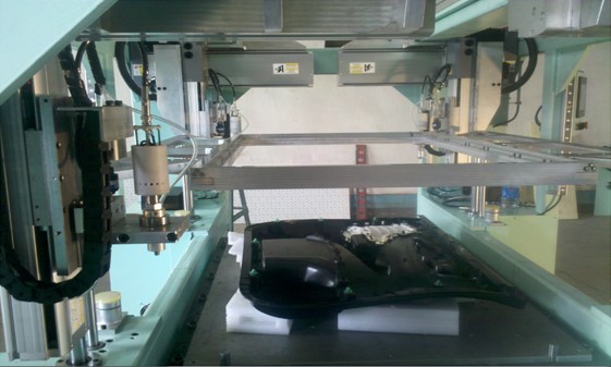 4頭超聲波焊機(jī)用于汽車內(nèi)飾焊接上,有4個(gè)獨(dú)立的焊頭,每個(gè)焊頭上有X、Y、Z三個(gè)運(yùn)動(dòng)軸。主要有回零、示教、焊點(diǎn)定位、及焊點(diǎn)測試等功能,設(shè)有焊頭防撞保護(hù)、光柵保護(hù)、伺服報(bào)警保護(hù),設(shè)備暫停等保護(hù)功能。設(shè)備如圖一所示: