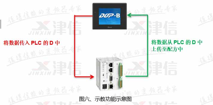 示教功能主要用于門板焊點(diǎn)的位置確定,保存至PLC中,然后再傳遞至HMI配方中,以便自動(dòng)工作時(shí)使用。示意圖如圖六所示:
