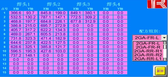 因設(shè)備所焊接的門板多達(dá)十幾種,而每個(gè)門板的焊接孔位置是不一樣的,所以需要使用配方功能,來實(shí)現(xiàn)同一臺設(shè)備焊接不同門板。設(shè)備配方所包含的功能如下: