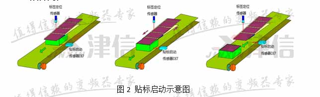 當傳送帶上的物品碰到“貼標啟動傳感器”后,凸輪啟動,標簽軸跟隨主軸移動,直到貼標完成,凸輪軸脫離則由“標簽定位傳感器控制”,如圖2所示。